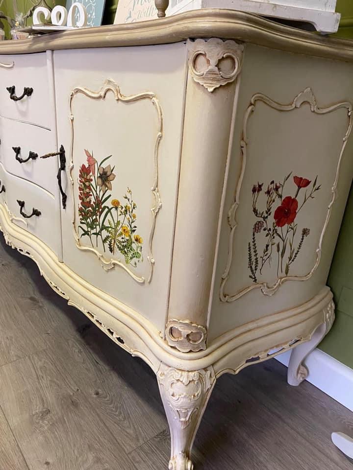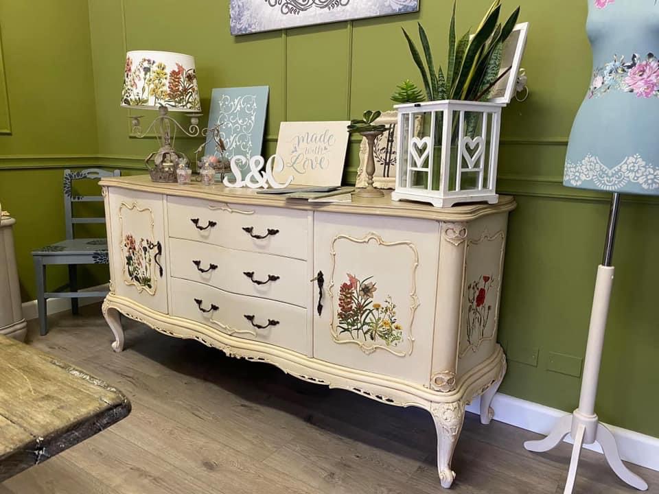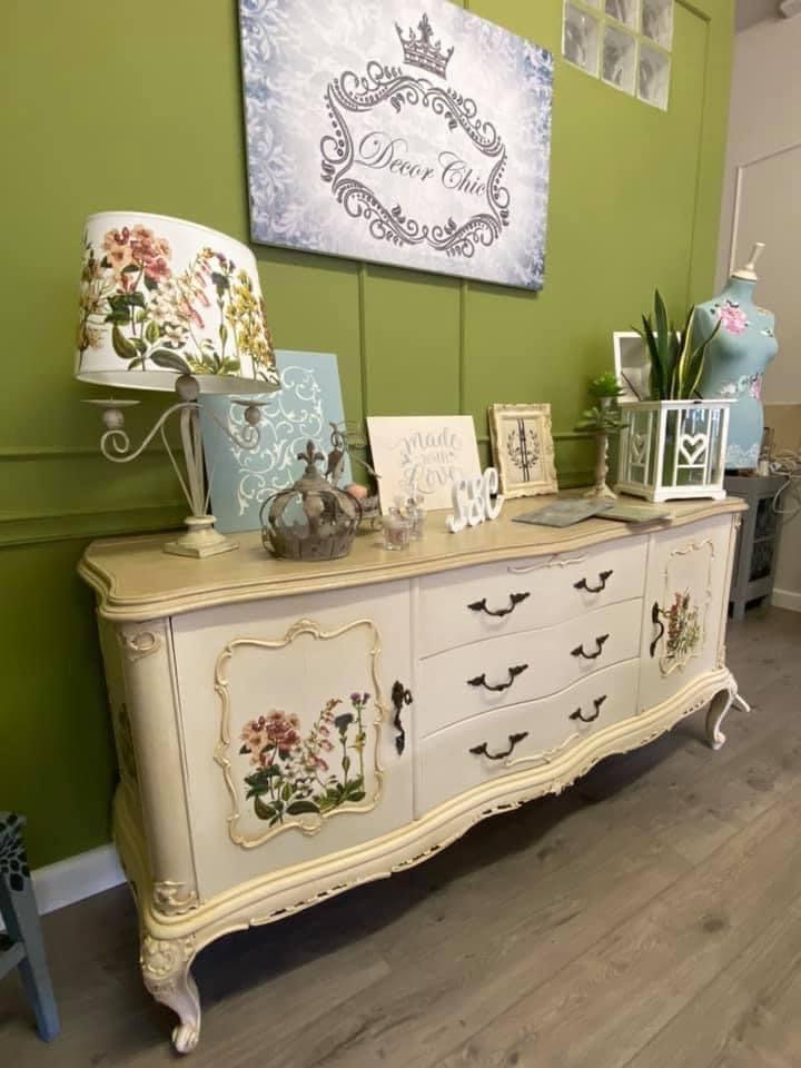 Un buffet Chippendale appartenuto ad una nonna ricordi di famiglia, per lui un cambio look country chic con sapore di campagna con i Transfer Re design e l'eleganza delle patine.
